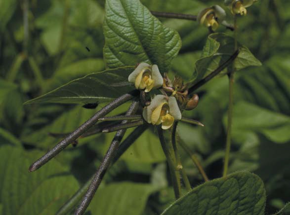 형태 및 생리생태 팥과 대체로 비슷한 모양을 하는 콩과작물로 발아할 때는 팥과 같이 떡잎이 지상으로 나오지 않으며 줄기의 길이는 30~80㎝이며 때로는 넝쿨성이어서 1m 이상일 때도 있다. 팥의 꽃보다는 작은 편이며 화방의 아래부터 꽃이 핀다. 꽃의 색은 팥꽃이 밝은 노란색인데 비하여 녹두는 노란 바탕에 배축색의 영향이 남아있어서 꽃 중앙의 용골판에 연한 자회색을 띤다.