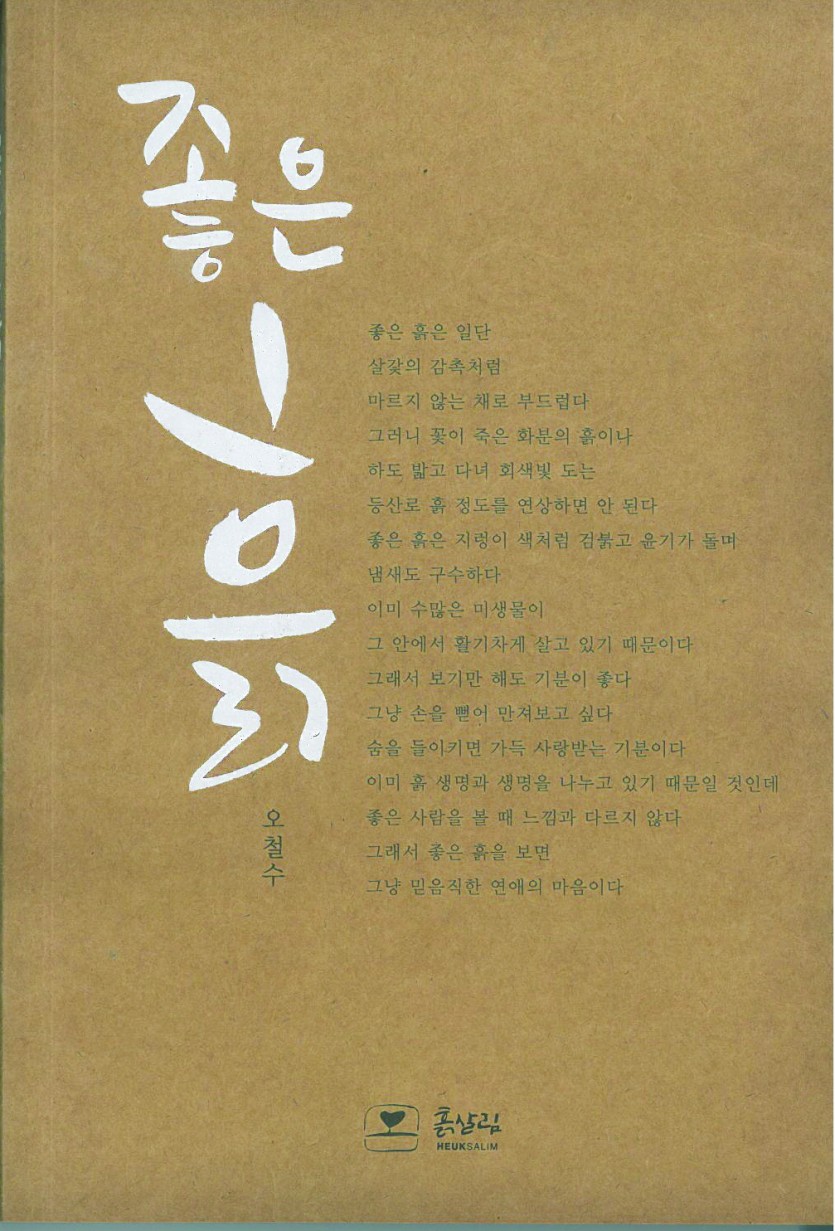 흙살림 신문이 독자 여러분의 원고를 받습니다. 친환경 농업이나 환경과 관련된 주제를 형식에 구애받지 않고 자유롭게 쓴 어떤 글이라도 좋습니다. 흙살림 신문 독자와 함께 나누고픈 이야기를 표현해보세요. 체택된 분에게는 오철수 시인의 <좋은 흙>, 이태근 흙살림 회장의 <흙 살리기>, 박석준 흙살림동일한의원 원장의 <동의보감, 과학을 논하다> 중 1권을 선물로 드립니다.