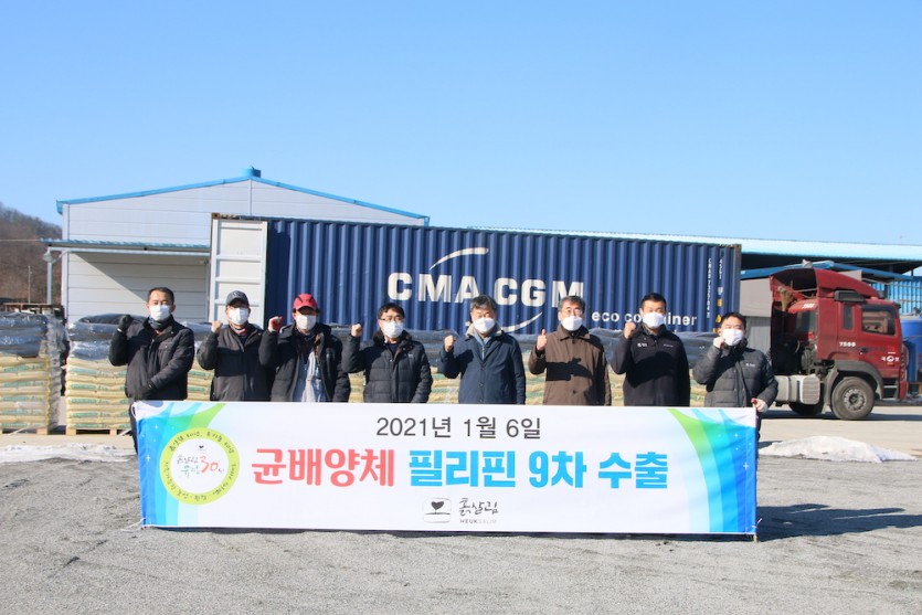 흙살림의 종합토양관리제인 발효퇴비 균배양체가 필리핀 9차 수출길에 올랐다. 흙살림은 신축년 새해 1월 6일 흙살림 균배양체 23톤을 필리핀 다바오로 컨테이너에 실어 출고했다.