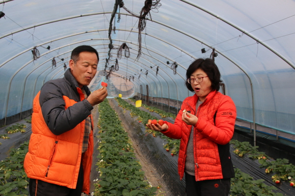 알은 굵지만 아직 덜 익은 딸기다. 빨갛게 잘 익은 딸기는 몇일 전 이미 수확한 상태다. “아직 익고 있는 중이지만 그래도 맛있을거에요.” 딸기를 건네는 말씀에 자신감이 꽉 차 있다. 한 입 베어물었다. 입안 가득 향이 풍겨져나오고 달콤한 즙이 흐른다.