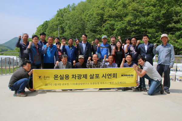 2015년 5월 8일 흙살림 토종연구소 농장에서 온실용 차광제 살포 시연회가 열렸다.