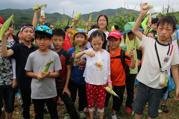 7월 23일 서울시 급식센터에서 친환경농산물 체험단이 흙살림 토종연구소를 찾았습니다. 옥수수 따기, 떡메치기, 방울토마토 수확 등
