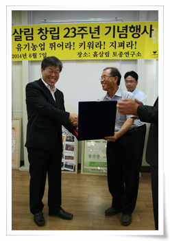 흙살림은 창립 23주년을 기념하며 유기농업에 힘써 온 농민들을 대상으로 ‘흙살림상’을 신설했다. ‘흙살림상’은 유기농업을 실천하며 기술을 개발, 보급, 확장하는데 큰 기여를 한 농민에게 주어지는 상이다. 올해 그 첫 번째 수상자로 충북 음성군 원남면에서 유기고추를 재배하고 있는 성기남 음성친환경농업인연합회 회장이 선정됐다.