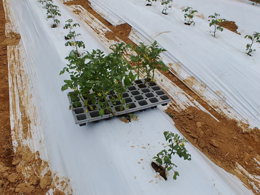 토마토 보식 및 고추두둑 점적깔기 및 비닐덮기 그리고 점적으로 토마토 물주기 시작 |