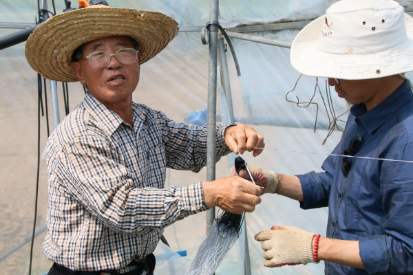 고추지지줄을 오이망과 같은 그물망을 이용해 재배함으로써 수확량을 올리는 방법을 개발하셨습니다.