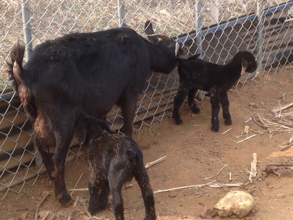 지난 일요일 염소 새끼 두마리가 태어났어요.