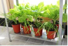 베란다 텃밭에서는 상추 외에도 잎채소나 허브 등 다양한 종류의 작물을 재배할 수 있다. 베란다에 드는 햇빛의 양을 고려해 작물을 선택하는 것이 바람직하다.
